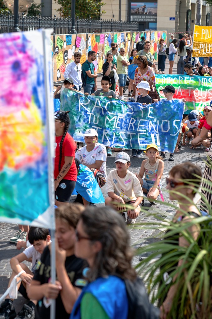 Pour célébrer l’ouverture de l’édition anniversaire du festival de Marseille, près de 400 enfants et adolescent·es ont investi le centre-ville de Marseille lors d’une grande manifestation dansée. Pensée par le Festival de Marseille en collaboration avec le Badaboum théâtre, cette manifestation unique a été chorégraphiée par Marina Gomes, directrice artistique de la compagnie Hylel.